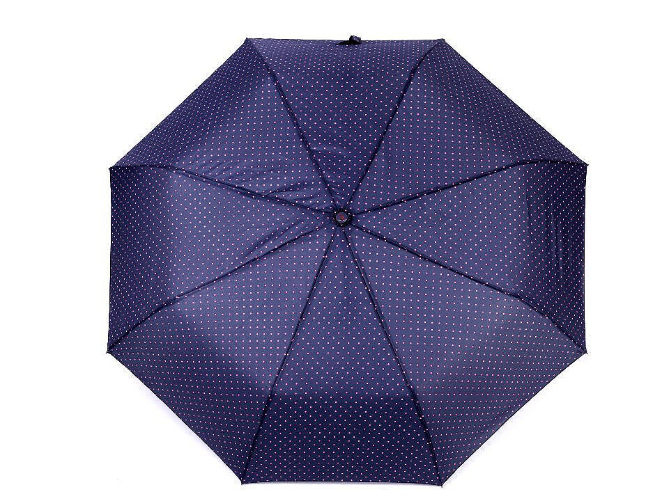 Dámský skládací vystřelovací deštník s puntíky - 1 ks - 2 modrá tmavá