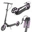 Koloběžka HM183 je vybavena skládacím rámem, který výrazně usnadňuje její přepravu a skladování. Ve složeném stavu jsou její rozměry 75 x 33 x 18 cm, což znamená, že se snadno vejde do kufru auta, pod stůl nebo do skříně. V rozloženém stavu jsou její rozměry 90 × 34 × 87-92-97 cm. Model má prostornou platformu a ruční brzdu v kombinaci s nášlapnou brzdou na zadním kole. Při častých toulkách městem také oceníte praktický stojánek.