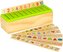 Balení obsahuje: dřevěnou krabičku s víkem, 8 velkých destiček (každá s 10 obrázky) a 80 malých destiček s jednotlivými obrázky.