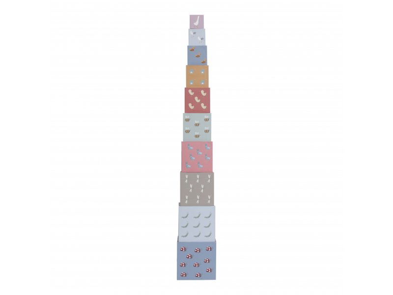 Barevné kartonové kostky s krásnými ilustracemi husičky a jejích přátel, kteří žijí kolem rybníka na venkově. Nechte vaše dítě kostky skládat na sebe do vysoké věže nebo vedle sebe podle velikosti. Ve starším věku se dítě s pomocí očíslovaných kostek může hravým způsobem učit počítat i rozpoznávat číslice.