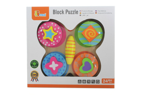 Dřevěná skládačka ve tvaru motýla. Rozměry motýla cca 20 x 20 cm. Rozměry balení cca 26 x 24 4 cm. Věk 2+ číst celé