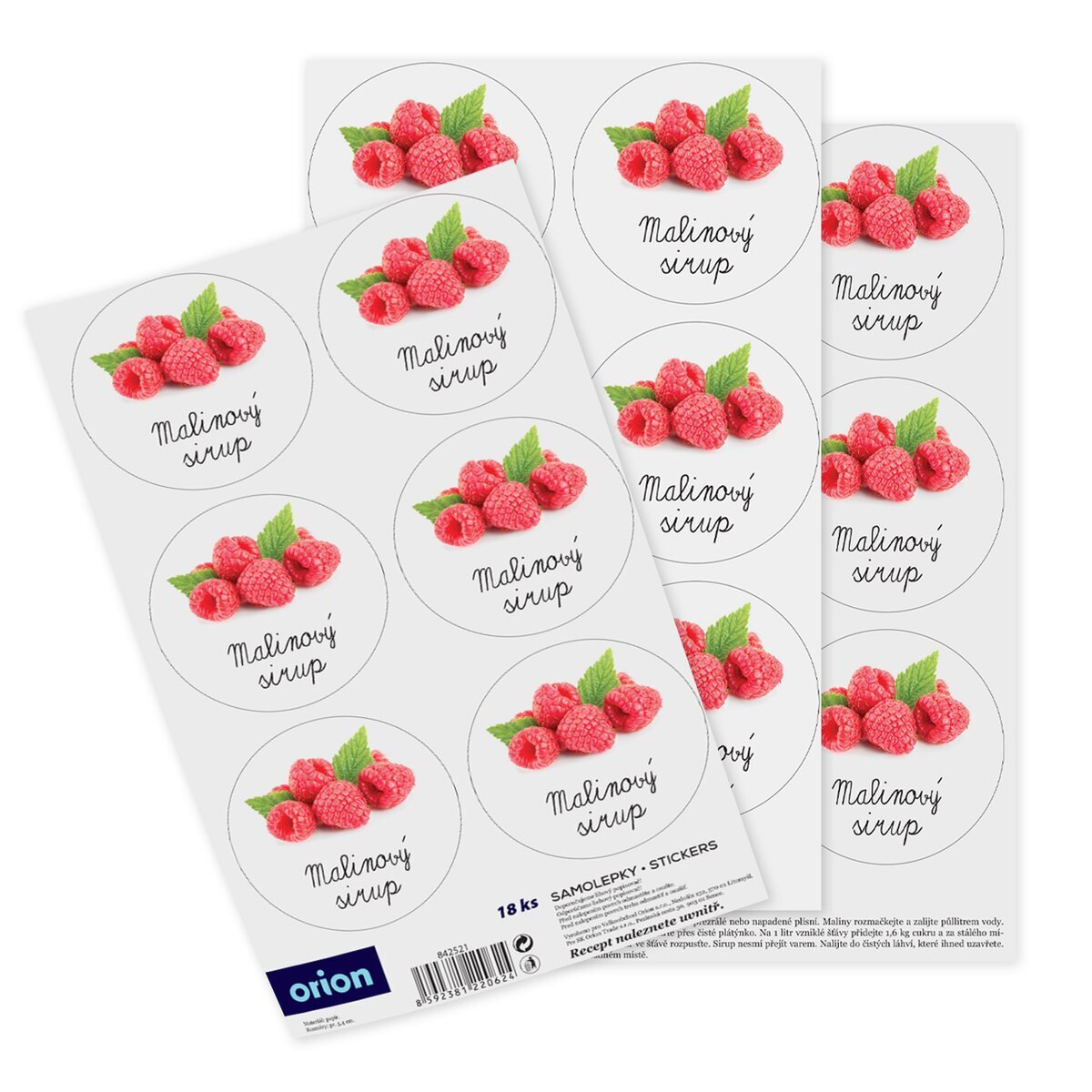 Samolepky na láhve nebo sklenice s domácím malinovým sirupem označí i ozdobí váš domácí produkt. Sada 18 ks. Součástí balení je recept na malinový sirup. Rozměry: pr. 5,4 cm. číst celé