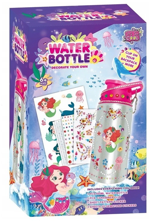 BIDON Z SYRENKAMI DIAMENTOWY KARTON , PAK 96/48 zamyknięcie z klapką , pojemnik na wodę 500 ml z diamentowymi zdobieniami, w pudełku znajdują się także naklejki z syrenkami, diamentami i zdrapka wymiary pudełka: 12 x 8 x 19,5 cm číst celé