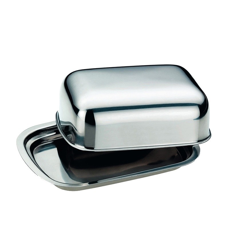 Nerezová dóza na máslo s prohloubením, které zabraňuje posunutí másla přes okraj.- materiál: nerezová ocel 18/10- rozměr: 15,5 x 11 x 5 cm- vhodná do myčky- série: Vision- značka: KELA číst celé