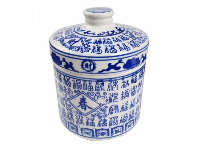 Porcelánová dóza kulatá China Kaligrafie 14,5 cm
