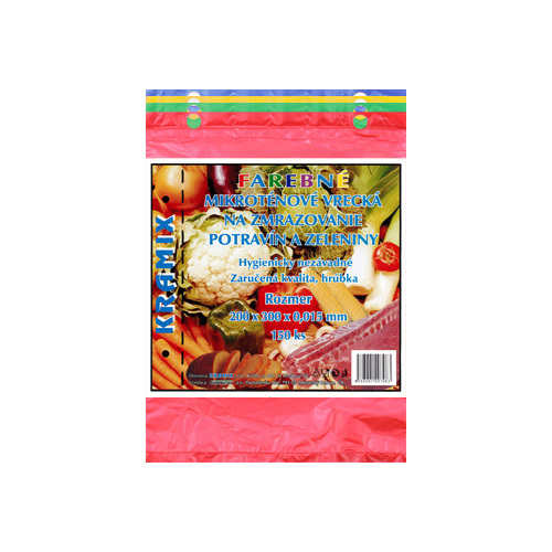 Mikrotenové sáčky 20 x 30 cm, 15 mic - barevné na trhací liště. Barevné mikrotenové sáčky jsou vhodné pro zamrazování potravin a zeleniny. Balení 150 ks.