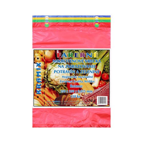 Mikrotenové sáčky 25 x 35 cm, 15 mic - barevné na trhací liště. Barevné mikrotenové sáčky jsou vhodné pro zamrazování potravin a zeleniny. Balení 150 ks. číst celé