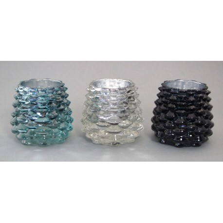 svícínek "stromeček" skleněný na čaj.svíčku (box 3 ks); modrá, čirá; rozměry: 6*7,5 cm; moc pěkné; DOPRODEJ
