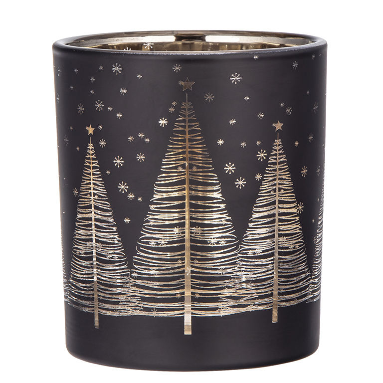 ŚKLENĚNÝ SVÍČNÍK ČERNÝ S ZLATOU VNITŘNOSTÍ 9X10CM DEKORACE VÁNOČNÍ STROMEČEK