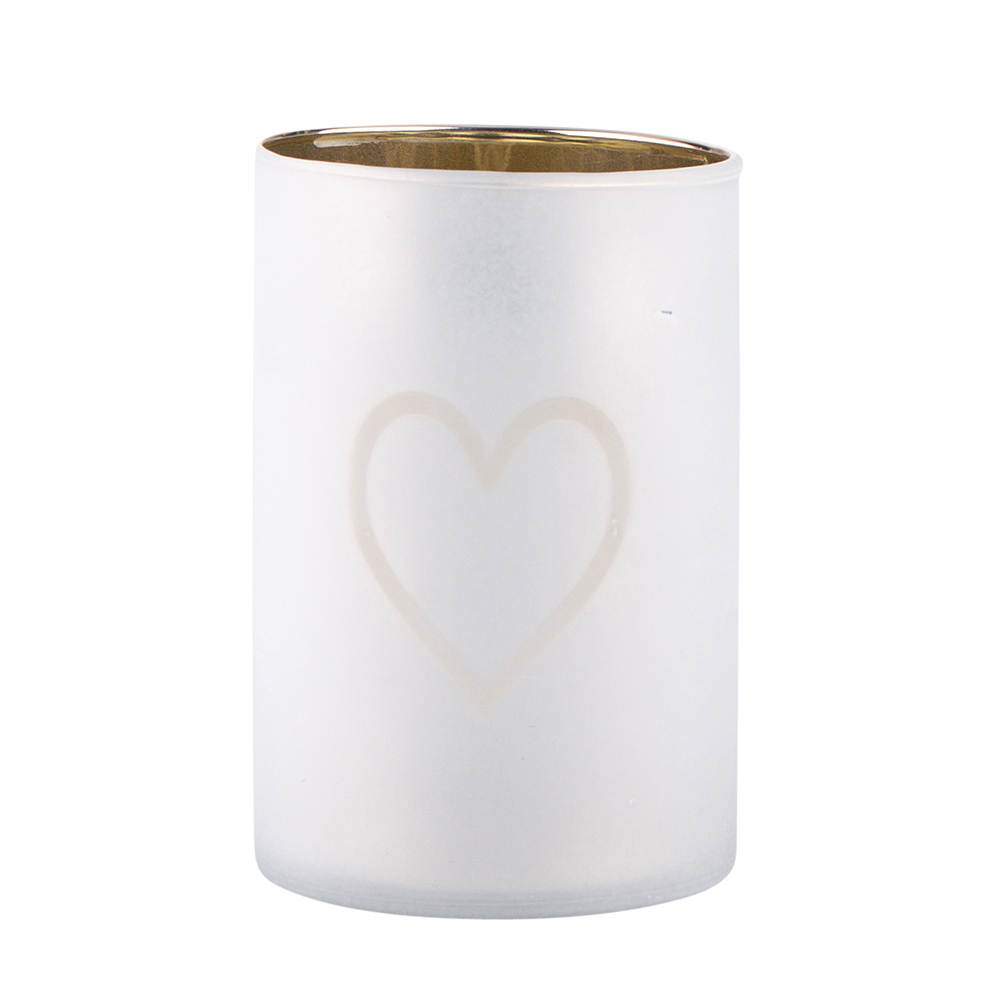 ŚKLENĚNÝ MATNÝ SVÍČNÍK S ZLATÝM VNITŘKEM 8X12CM DEKORACE SRDCE