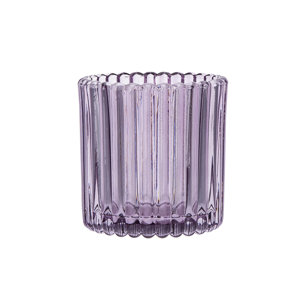 SKLENĚNÝ SVÍCEN 7.5X7.5X7.5CM FIALOVÝ
