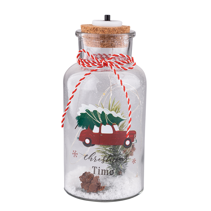 ŠŤASTNÝ STROM DEKORACE V SKLENĚNÉM SKLE S LED OSVĚTLENÍM 8X8X16.5CM