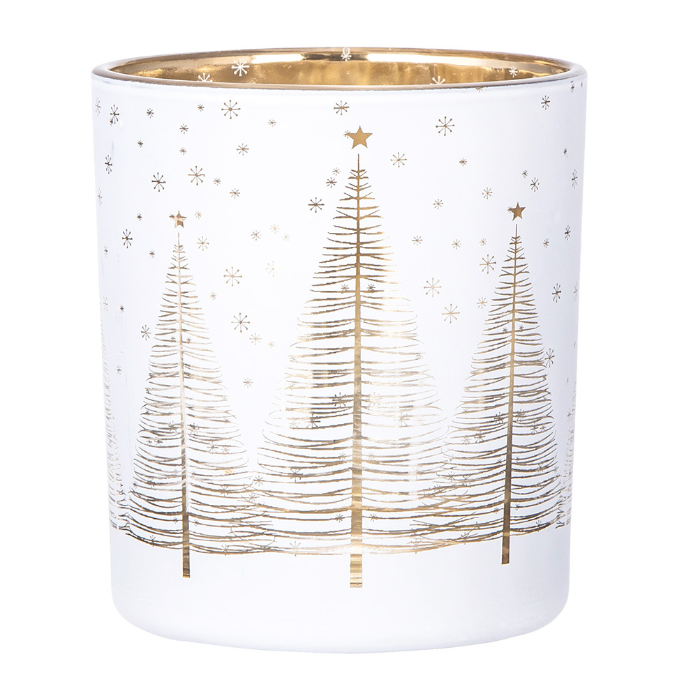 ŚKLENĚNÝ SVÍČNÍK BÍLÝ S ZLATOU VNITŘNOSTÍ 9X10CM DEKORACE VÁNOČNÍ STROMEČEK