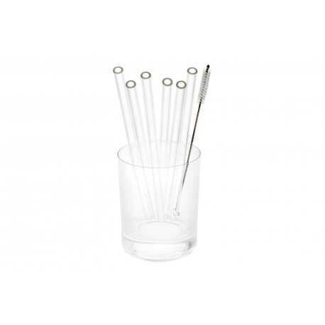 Skleněná brčka - délka 20 cm, průměr 8 mm. Balení obsahuje 6 ks brček a kartáček na čištění.