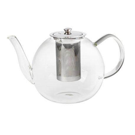 Skleněná varná konvice s nerezovou pokličkou a sítkem. Jemné sítko čajový nálev dobře přecedí a snadno se čistí. Objem konvice je 2 l.