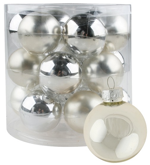Sada skleněných baněk stříbrných 4 cm, 18ks