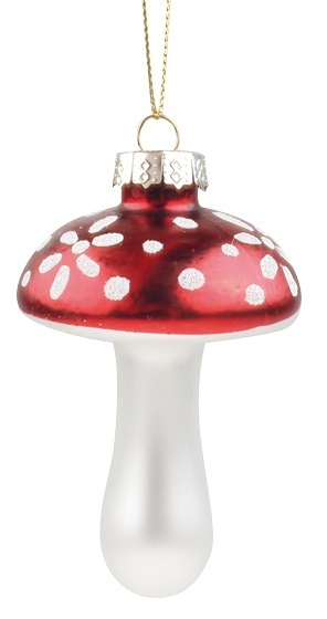 Krásná skleněná dekorace ve tvaru muchomůrky se bude krásně vyjímat i na vašem vánočním stromečku!