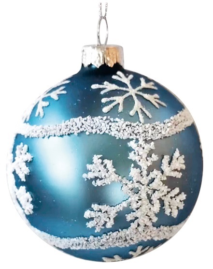 Sada skleněných baněk 8 cm, 4 ks v balení, modré s vločkami