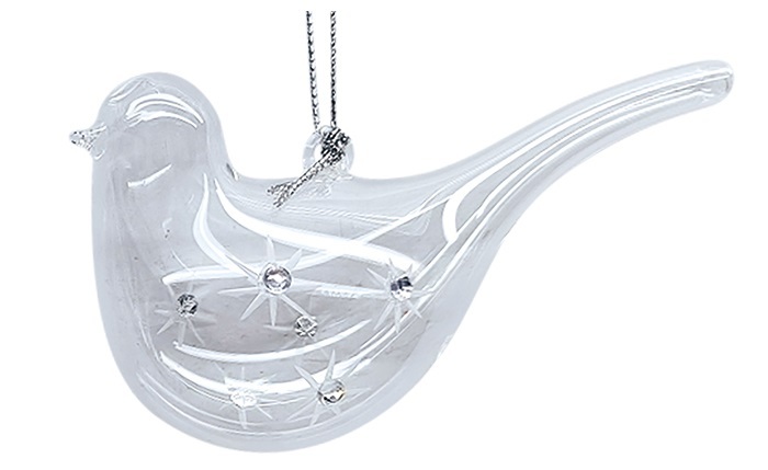 Pták skleněný s vločkami 11 x 4 x 2,5 cm