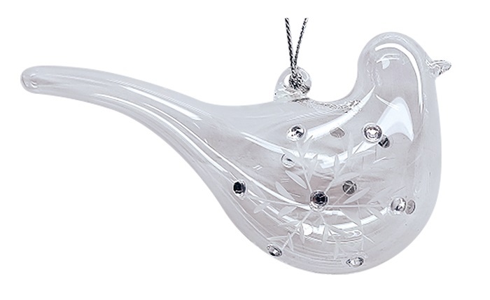 Pták skleněný s vločkou 11 x 4 x 2,5 cm