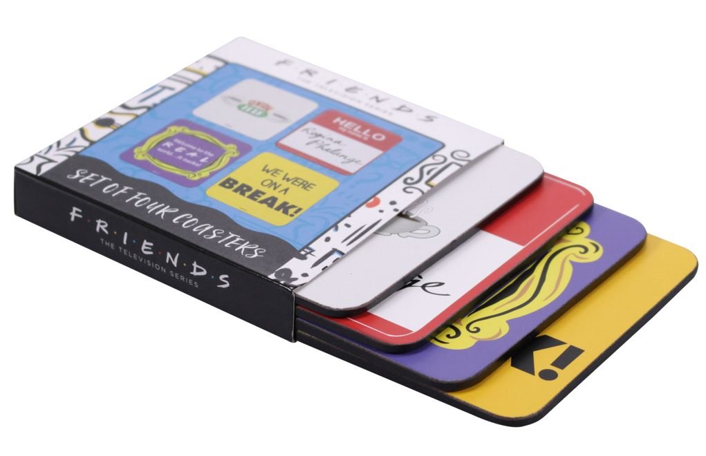 Oficiální tácky a doplňkové zboží z katalogu produktů s logem a grafikou z populárního amerického seriálu Přátelé.
