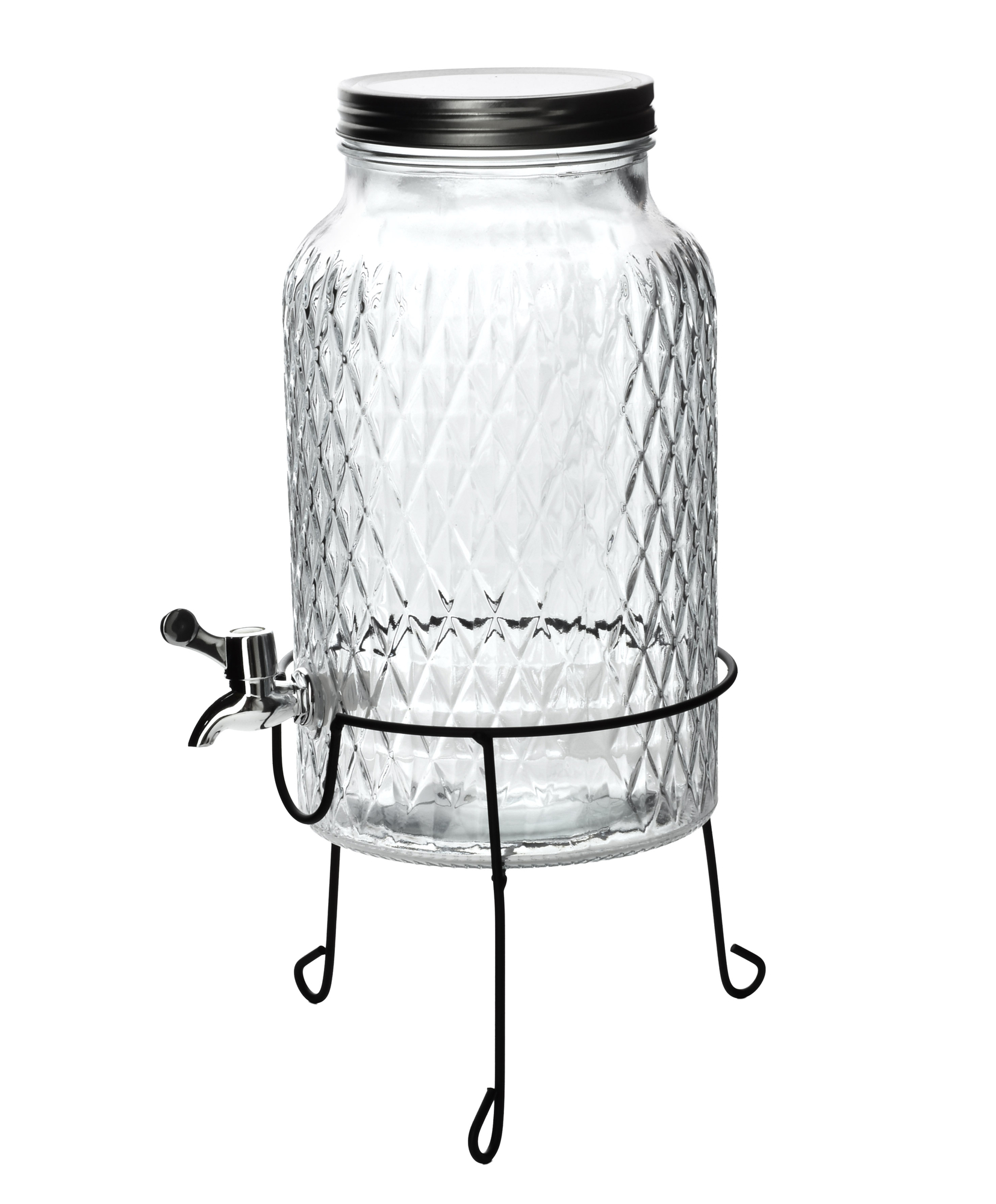 Słój z kranikiem MODERN KITCHEN o kryształowej fakturze o pojemności 6L to praktyczne i stylowe rozwiązanie do serwowania napojów podczas spotkań rodzinnych, przyjęć czy codziennego użytku w kuchni. Szklany pojemnik z wygodnym kranikiem umożliwia łatwe i higieniczne nalewanie lemoniady. Naturalne materiały i minimalistyczny design sprawiają, że naczynie nie tylko świetnie spełnia swoją funkcję, ale także stanowi elegancki element dekoracyjny na stole lub kuchennym blacie. Dzięki przezroczystemu szkłu można efektownie wyeksponować zawartość, co dodatkowo podkreśla walory estetyczneserwowanych napojów. To idealne połączenie funkcjonalności, wygody i stylu, któreułatwia codzienne serwowanie i wprowadza do wnętrza nutę nowoczesnej elegancji z naturalnym akcentem. pojemnosć:6L wymiary: 6L