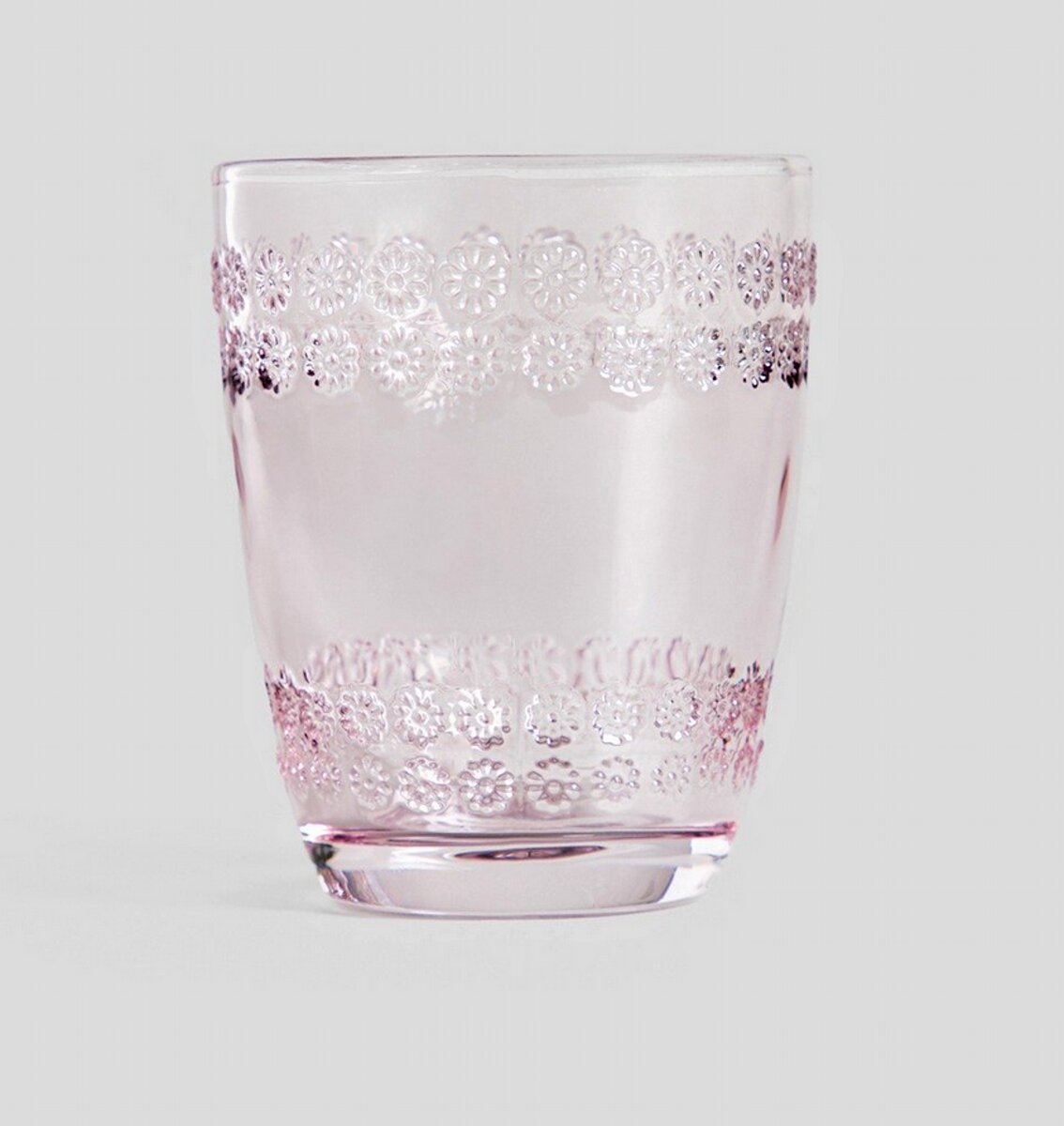 Jemný růžový odstín - Objem 0,27 l - ideální pro každodenní použití - Růžová sklenice s ozdobami 0,27 l
