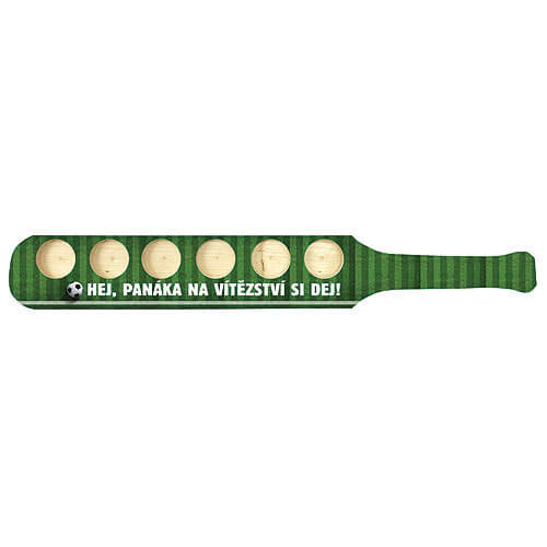 Dřevěný držák na skleničky na alkohol pro 6 kamarádů. Slavíte s kamarády a přáteli a potřebujete servírovat panáčky s alkoholem? Využijte dřevěný stojan, kterým bez problémů obsloužíte celou společnost. Držák na skleničky pro fotbalisty s nápisem - hej, panáka si dej. Originální dárek pro fotbalistu na společné oslavy a pro zapití vyhraného zápasu.