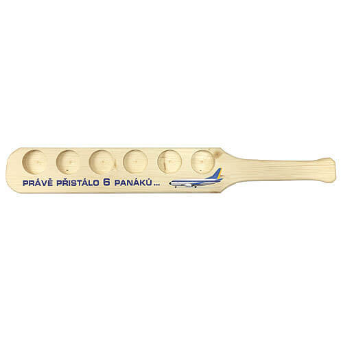 Dřevěný držák na skleničky na alkohol pro 6 kamarádů. Slavíte s kamarády a přáteli a potřebujete servírovat panáčky s alkoholem na přípitek? Využijte dřevěný stojan, kterým bez problémů obsloužíte celou společnost. Držák na skleničky pro muže i ženy s nápisem - Právě přistálo 6 panáků. Originální dárek pro muže na společné oslavy a přípitky.