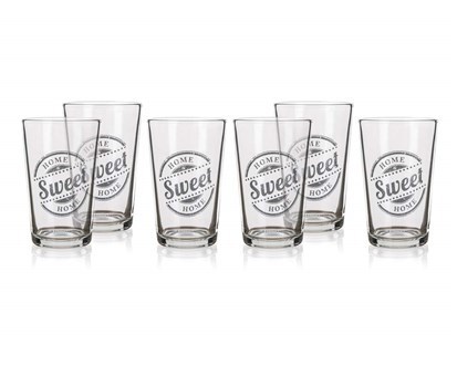 6dílná sada skleniček SWEET HOME o objemu 230 ml se skládá z čirých sklenic s dekorem a je vhodná na podávání studených limonád, džusů a ostatních nápojů.