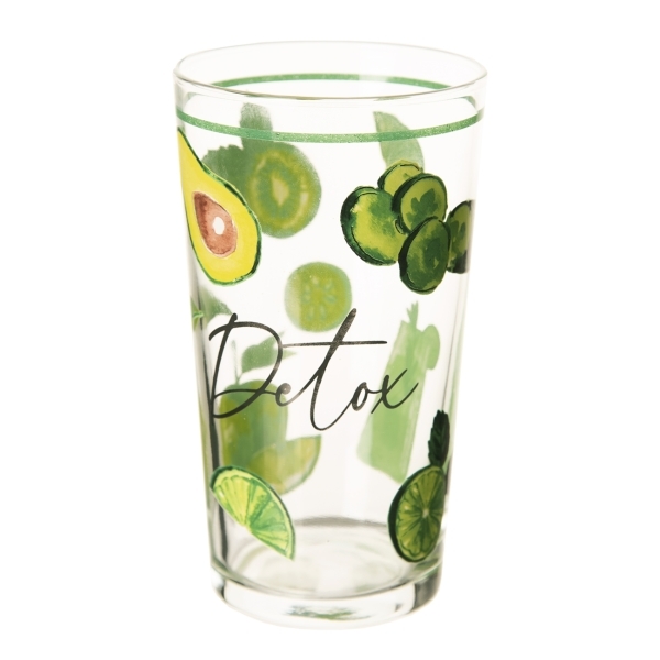 Sklenice vysoká s barevným dekorem nejen na letní nápoje. Materiál: sklo. Rozměry: objem 0,6 l, pr. 8,5 cm, v. 15,5 cm. Lze mýt v myčce, není vhodná do MVT.