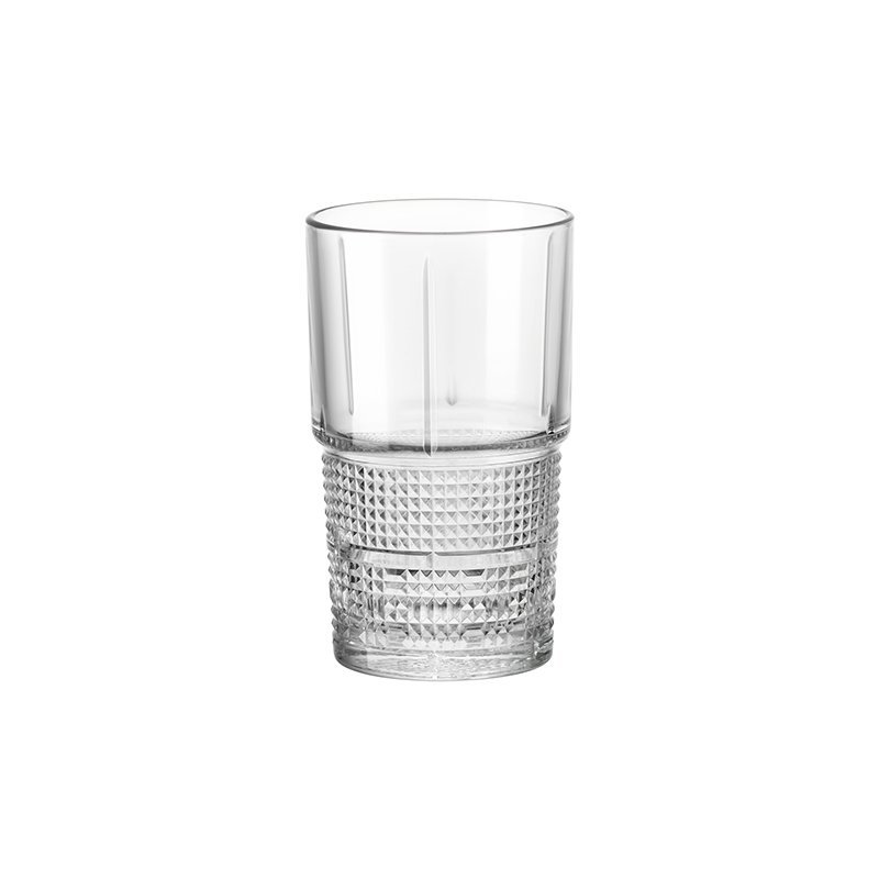 Kolekce Novecento zahrnuje širokou škálu sklenic s vintage designem. Spodní část sklenice je zdobena geometrickou výzdobou, která připomíná počátek dvacátého století a dodává sklenici nádech nostalgie. Sklenice Hi-Ball má válcovitý tvar a objem 40,5 cl, který se skvěle hodí pro servírování míchaných koktejlů jako je Cuba Libra nebi Gin Tonic. Sklenice jsou stohovatelné a lze je mýt v myčce nádobí.