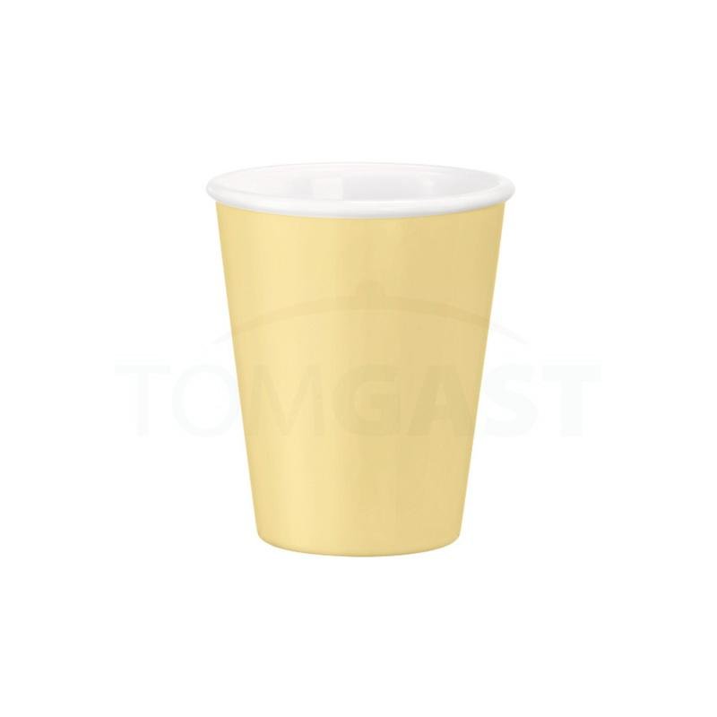 Aromateca šálek v pastelově žluté oživí váš jídelní stůl. Díky svému materiálu jsou šálky odolné vůči odštípnutí a poškrábání a poskytují naprostou hygienu. Kolekce je ideální pro použití ve školských či zdravotnických zařízeních.
