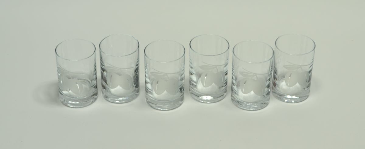 sklen. 50ml, 6ks ŠVESTKA, SHOT, panák, písk.sklo