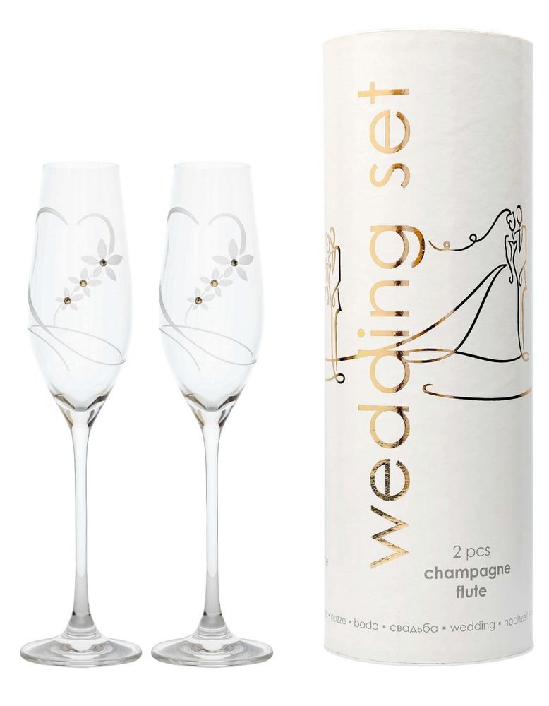 sklen. 210ml, 2ks, 100, weding set, d6,6x26,3cm, Swarovski-flétna