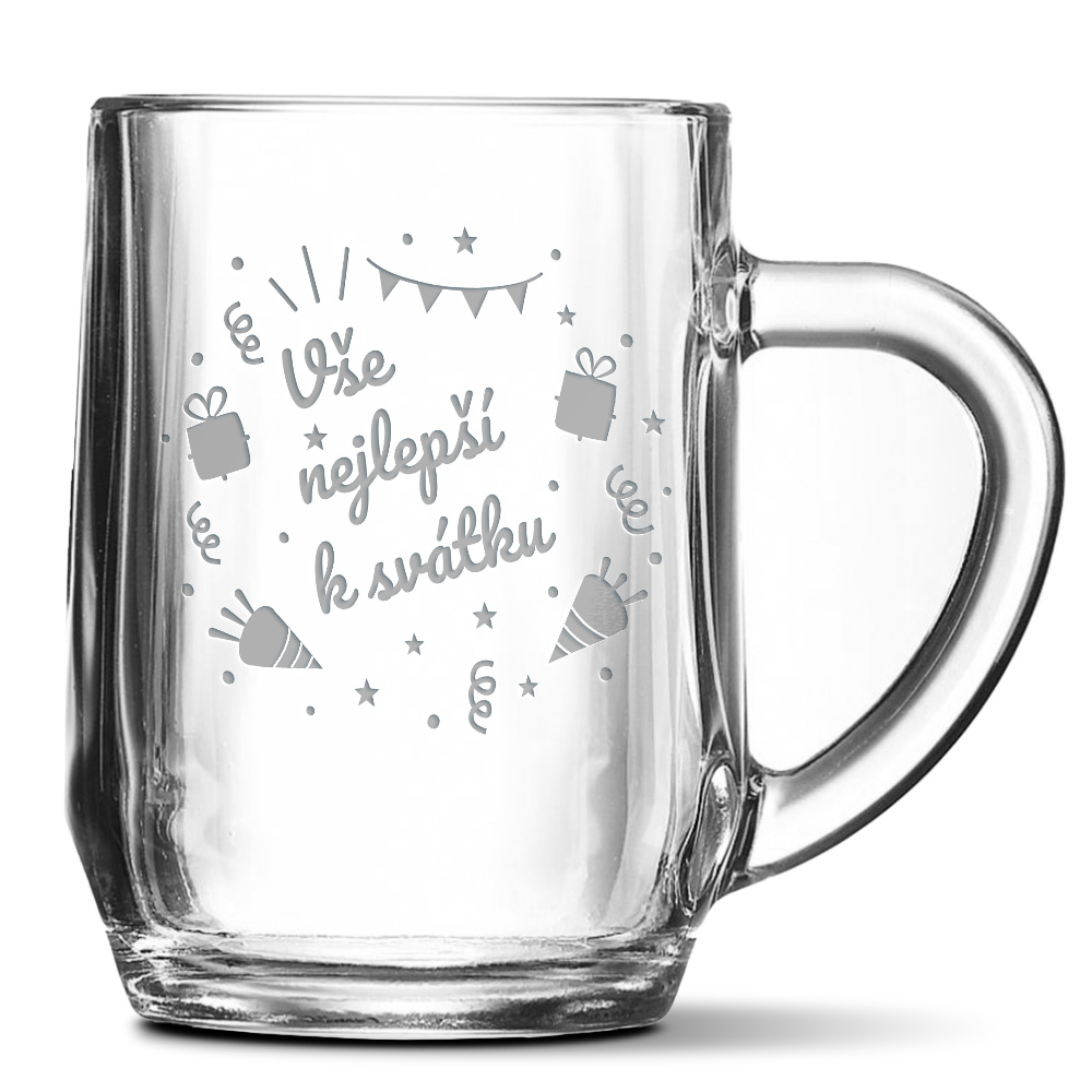 Půllitr na pivo s originálním motivemPůllitr s originálním motivem je krásným dárkem pro všechny pivaře, kteří neradi zapadnou v davu. Potěšte svého tatínka nebo třeba dědečka originálním půllitrem s osobním věnováním. Gravírování je z jedné strany, takže pravák ho při pití má na straně k sobě.Hladký pivní půllitr s ergonomicky tvarovaným uchem z čirého silného skla. Vlastnosti:Materiál: SkloHmotnost: 0.91 gKategorie objemu: 401 - 600 mlObjem: 500 mlPrůměr: 81 mmVýška: 180 mm