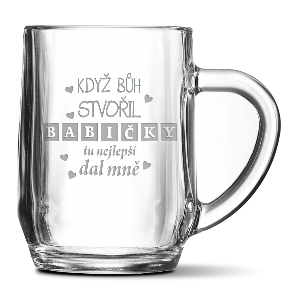 Půllitr na pivo s originálním motivemPůllitr s originálním motivem je krásným dárkem pro všechny pivaře, kteří neradi zapadnou v davu. Potěšte svého tatínka nebo třeba dědečka originálním půllitrem s osobním věnováním. Gravírování je z jedné strany, takže pravák ho při pití má na straně k sobě.Hladký pivní půllitr s ergonomicky tvarovaným uchem z čirého silného skla. Vlastnosti:Materiál: SkloHmotnost: 0.91 gKategorie objemu: 401 - 600 mlObjem: 500 mlPrůměr: 81 mmVýška: 180 mm