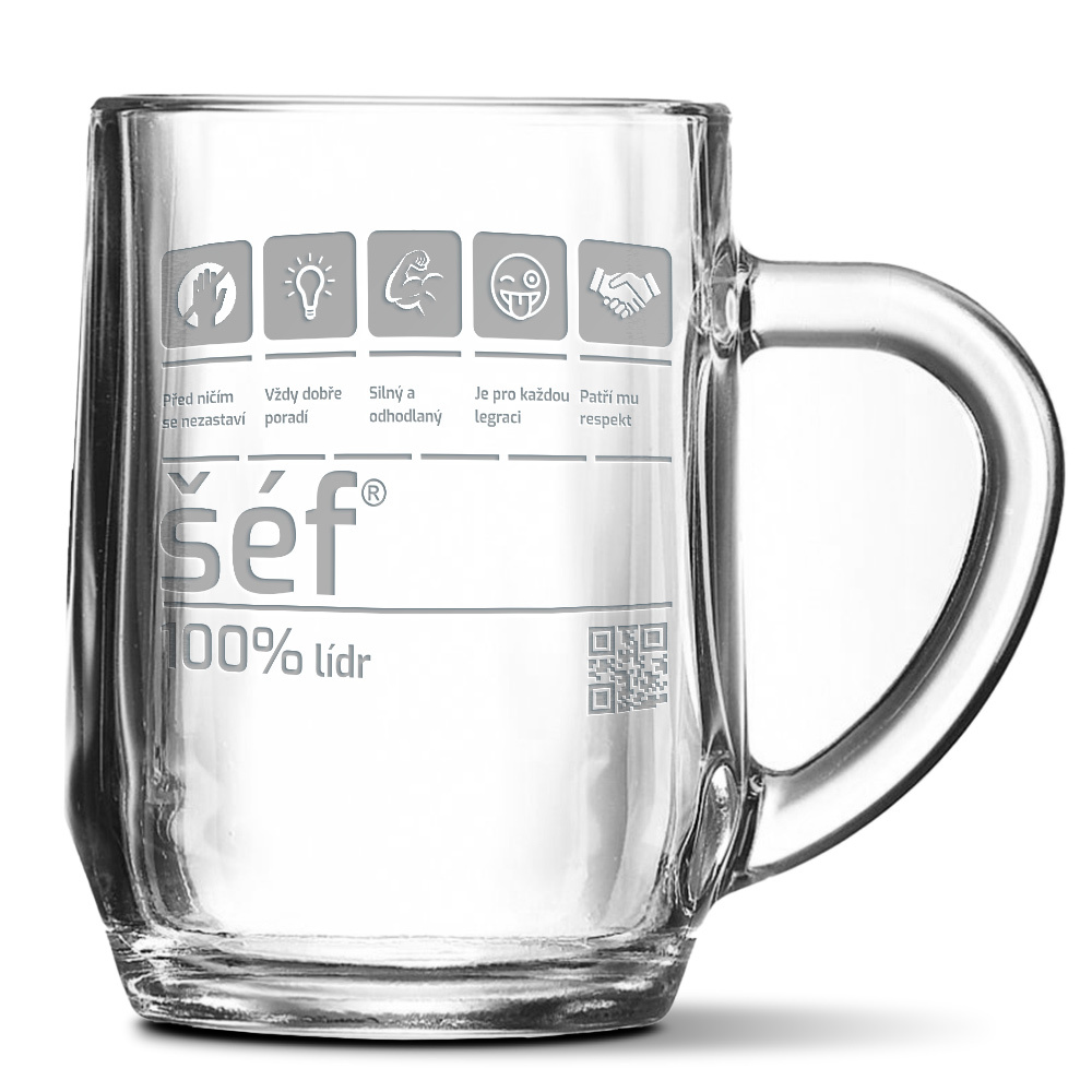 Půllitr na pivo s originálním motivemPůllitr s originálním motivem je krásným dárkem pro všechny pivaře, kteří neradi zapadnou v davu. Potěšte svého tatínka nebo třeba dědečka originálním půllitrem s osobním věnováním. Gravírování je z jedné strany, takže pravák ho při pití má na straně k sobě.Hladký pivní půllitr s ergonomicky tvarovaným uchem z čirého silného skla. Vlastnosti:Materiál: SkloHmotnost: 0.91 gKategorie objemu: 401 - 600 mlObjem: 500 mlPrůměr: 81 mmVýška: 180 mm