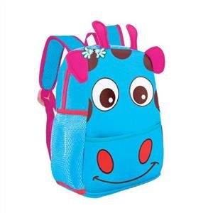 Mały plecak neoprenowy z motywem żyrafy idealny dla każdego przedszkolaka. Plecaczek posiada jedną komorę idealną do pomieszczenia mniejszych książek i zeszytów oraz dodatkowa kieszeń na drobiazgi. Komora i kieszeń zamykana na zamek błyskawiczny z gumowym ozdobnikiem. Po bokach znajdziemy kieszenie wykonane z elastycznej siateczki, które będą idealne na butelkę z napojem lub bidon. Doskonale sprawdzi się też podczas wycieczek, do przechowywania stroju na gimnastykę czy innych akcesoriów potrzebnych przedszkolakowi w codziennym użytku. Plecak wykonany ze specjalnego nieprzemakalnego materiału oraz odpornego na zabrudzenia. Do góry plecak posiada dodatkowy uchwyt, który umożliwi trzymanie go w rączce. Szelki plecaka są regulowane. Cały plecaczek utrzymany jest w kolorze niebieskim z różowymi dodatkami. Wymiary plecaczka: ok. 22 x 30 x 9 cm.