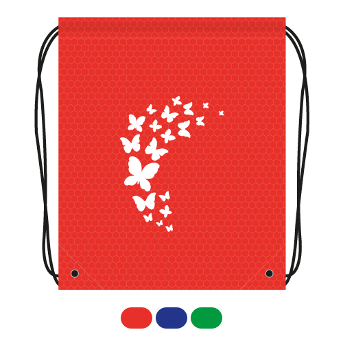 Textilní sáček na přezůvky s barevným potiskem na přední straně, se zarážkami na zatahování na obou stranách. Rozměry: 34x39 cm. Materiál: Polyester. Ve třech barvách. číst celé