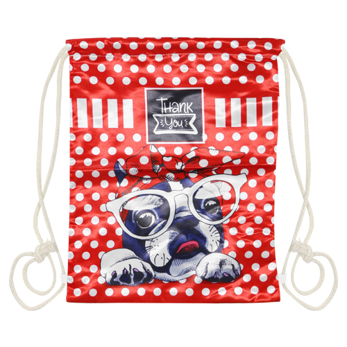 Textilné vrecko na prezuvky s lesklou potlačou “Dog Red Dots“ so zarážkami na oboch stranách. Vak je vhodný pre športové využitie aj bežné nosenie. číst celé