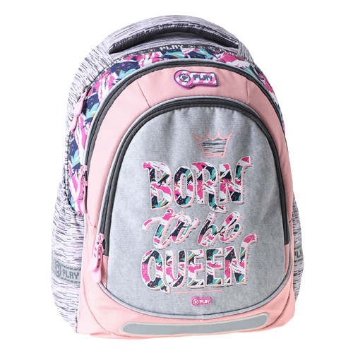 Školní batoh Maxx Play, Born To Be Queen: • moderní design, polyesterový materiál / 600D • anatomicky tvarovaná záda pro snadnou cirkulaci vzduchu • dva přední nastavitelné popruhy • dvě horní rukojeti, plně lemované a pohodlné popruhy • reflexní pásy, které zvyšují viditelnost a bezpečnost v noci • vnitřní příčka s jednou velkou kapsou a elastickou gumou • dvě boční elastické kapsy • silné a stabilní dno • rozměry: 41x31x21 cm. Hmotnost: 920 g. Objem: 26 L.