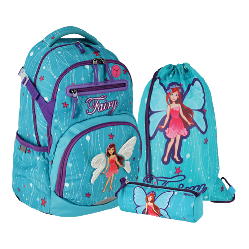 Sada: školská taška + vrecko na prezúvky + penál, v motíve sovičky