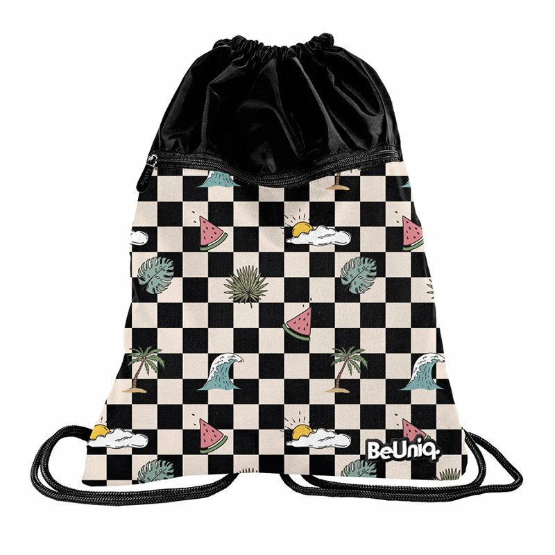 Worek na obuwie premium BeUniq. Worek zamykany jest ściągaczem, dzięki czemu dostęp do zawartości jest łatwy i szybki. Wyposażony jest w dodatkową kieszeń na zamek, w której można zmieścić kilka niezbędnych drobiazgów. Grube, plecione sznurki ściągające, umożliwiają noszenie worka na plecach lub na ramieniu. Tył worka jest wzmocniony i pokryty siatką. Oferujemy atrakcyjne wzornictwo, nie zapominając o tym, by oferować solidne i praktyczne produkty, które sprawdzą się w każdych warunkach.Wymiary produktu: 46x37cm