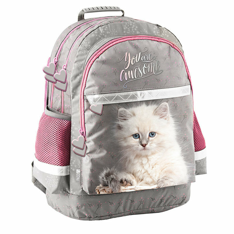 Cechy produktu: - posiada dwie pojemne komory oraz dwie duże kieszenie frontowe, - zamykany za pomocą zamków błyskawicznych z ozdobnymi suwakami, - wyposażony w dwie boczne zewnętrzne kieszonki z siatki, - usztywnione gąbką, ergonomiczne wyprofilowane plecy, - szelki pokryte miękkim materiałem z możliwością regulacji długości, - usztywnione dno, wzmocnione i zabezpieczone gumowymi stopkami, - elementy odblaskowe, które zwiększają bezpieczeństwo, - uszyty z wytrzymałego materiału odpornego na przemakanie, - wygodny uchwyt do przenoszenia i zawieszenia plecaka, - idealnie sprawdzi się zarówno w szkole czy na wycieczce. Wymiary produktu: 41x28x18cm Materiał: 100% poliester