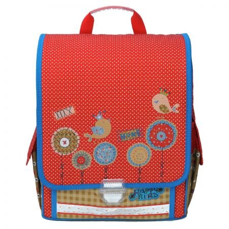 Wykonany z wysokiej jakości materiałów tornister szkolny Happy Bird utrzymany w czerwonej kolorystyce z atrakcyjnym motywem. W komorze głównej pomieszczą się niemal wszystkie konieczne artykuły szkolne. W kieszonkach bocznych można umieścić np. przybory do pisania. Zawiera elementy odblaskowe, dzięki którym dziecko jest widoczne po zmroku na ulicy czy chodniku.