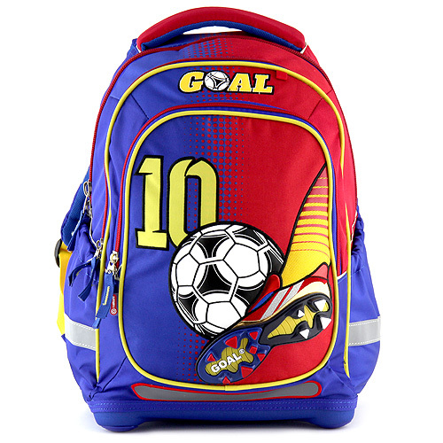 Batoh značky Goal v lákavém fotbalovém designu potěší všechny malé školáky! Vyroben z odolného a nepromokavého materiálu. Prodyšná anatomicky tvarovaná záda s měkkou vnější vložkou a vnitřní plastovou výztuhou pro stálý tvar batohu. Polstrované jednoduše nastavitelné ramenní popruhy v ideální šíři pro maximální pohodlí. Vnitřní prostor je dvoukomorový a umožňuje snadný přístup. Hlavní komora oddělena přepážkou pro přehledné uložení školních potřeb. Po obou stranách batohu kapsy na láhev s pitím. Přední kapsa opatřena praktickým organizérem včetně karabinky na klíče. Dno batohu je pevné, batoh je stabilní. Velké měkké poutko přizpůsobené dětské ruce. Díky reflexním zónám je dobře viditelný. Perfektní funkční batoh ideální pro školáky 1. stupně ZŠ. Rozměry: šířka 32 cm x hloubka 18 cm x výška 41 cm. Materiálové složení: 100% polyester. Váha: 980 g.