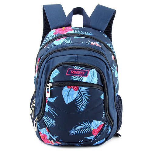 Trendový batoh je vhodný pro žákyně 2. stupně základní školy nebo studentky. Tento odolný batoh vyniká nízkou hmotností i povedeným neotřelým designem.Batoh disponuje ergonomicky zpevněnými a prodyšnými zády. Dále jsou součástí dva pohodlné ramenní popruhy s polstrováním a poutkem do ruky.Tento mimořádně praktický batoh nabízí prostornou velkou komoru, dvě větší přední kapsy s jednoduchým organizérem a malou kapsičku na drobnější věci, vše uzavíratelné na zip. Dvě postranní síťované kapsy na láhev s pitím.Rozměry: výška 38 cm, šířka 28 cm, hloubka 16 cm. Materiálové složení: 100% polyester.