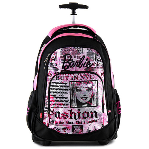 Dokonale zpracovaný batoh s efektním potiskem populární panenky Barbie disponuje voděodolným povrchem a dvoukomorovým vnitřním prostorem. Hlavní komora oddělena přepážkou, menší komora opatřena jednoduchým organizérem na tužky a drobnější věci. Přední zipová kapsa ideální na svačinu. Batoh je opatřen vozítkem, které má na spodní straně dvě plastová kolečka a v horní části výsuvnou rukojeť pro snadný pohyb na rovném povrchu. Výškově nastavitelné, vyztužené a prodyšné ramenní popruhy v ideální šíři 60 mm. Kapsy na láhev po obou stranách batohu. V horní části velké měkké poutko přizpůsobené dětské ruce. Rozměry: výška 38 cm x šíře 30 cm x hloubka 20 cm. Materiálové složení: 100% polyester. Váha batohu: 2 176 g.Parádní batoh, který udělá velkou radost všem školačkám! Vhodný pro 1. stupeň základní školy.