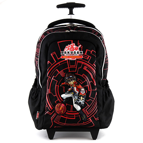 Dokonale zpracovaný batoh s voděodolným povrchem a dvoukomorovým vnitřním prostorem, bezpečně uzavíratelný na zip. Hlavní kapsa oddělena vyztuženou přepážkou se dvěma vnitřními kapsičkami. Menší kapsa též oddělena přepážku. Přední stranu zdobí 3D nášivka oblíbeného seriálového hrdiny Bakugana. Batoh je opatřen vozítkem, které má na spodní straně dvě plastová kolečka a v horní části výsuvnou rukojeť pro snadný pohyb na rovném povrchu.Výškově nastavitelné, vyztužené a prodyšné ramenní popruhy v ideální šíři 60 mm. Reflexní prvky zajistí bezpečnost dítěte v silničním provozu. Kapsy na láhev po obou stranách batohu. Velké měkké poutko přizpůsobené dětské ruce. Rozměry: výška 47 cm x šířka 32 cm x hloubka 23 cm. Materiálové složení: 100% polyester. Váha batohu: 1 826 g. Parádní batoh, který udělá velkou radost všem školákům! Vhodný pro 1. stupeň základní školy.